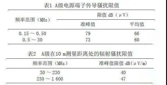 根據(jù)鐵路客運(yùn)專線標(biāo)準(zhǔn)規(guī)則,傳導(dǎo)煩擾限值和輻射煩擾限值如表1、2所示。