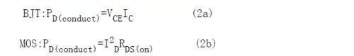 控制這個損耗的典型辦法是使功率開關(guān)導(dǎo)通期間的電壓降最小。要達(dá)到這個目的,設(shè)計者有必要使開關(guān)作業(yè)在飽滿狀態(tài)。這些條件由式(2a)和式(2b)給出,通過基極或柵極過電流驅(qū)動,確保由外部元器件而不是功率開關(guān)自身對集電極或漏極電流進行控制。