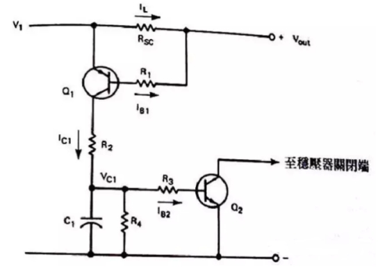 作業(yè)原理是:在正常的作業(yè)情況下,流入到Rsc上的Il不會(huì)發(fā)生很大的壓降,那么就不會(huì)使Q1導(dǎo)通,若負(fù)載電流足夠大就會(huì)在Rsc上發(fā)生電壓,使Q1導(dǎo)通。若Q1在OFF裝態(tài)時(shí),而且Ic1=0時(shí)C1會(huì)全部放電掉,因此Q2也會(huì)處于OFF情況,假設(shè)Il電流逐步添加時(shí),則Il*Rsc=VbeQ1+Ib1R1,此刻會(huì)合電極會(huì)有電流Ic1流過(guò),并有下面的時(shí)間常數(shù)將C1充電T=R2*C1,那么C1上的電壓是:Vc1=Ib2R3+VbeQ2,為了使為了使電容器電壓的負(fù)載效應(yīng)減到最低值,咱們可選用具有較高的HFE的達(dá)林凳管子來(lái)替代Q2,這樣可以把基極電流約束在微安培,我門(mén)在挑選電阻R4時(shí)要遠(yuǎn)遠(yuǎn)大于R3。這樣當(dāng)電流過(guò)載時(shí),C1電容會(huì)快速放電。