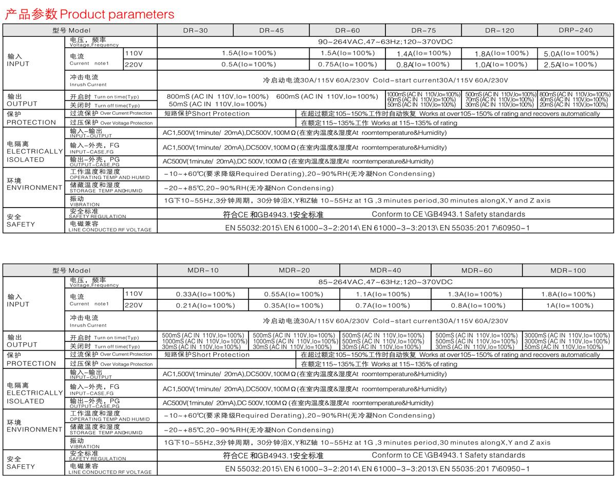 單相,全范圍輸入 空載待機消耗瓦數(shù)<0.75W~1W 適合安裝于DIN rail TS-35 / 7.5 或 15 內(nèi)建主動式功率因子矯正功能(active PFC) 適合于視覺檢測設(shè)備及植物栽培系統(tǒng) MDR-20(200-360VAC)適合風(fēng)力發(fā)電行業(yè)